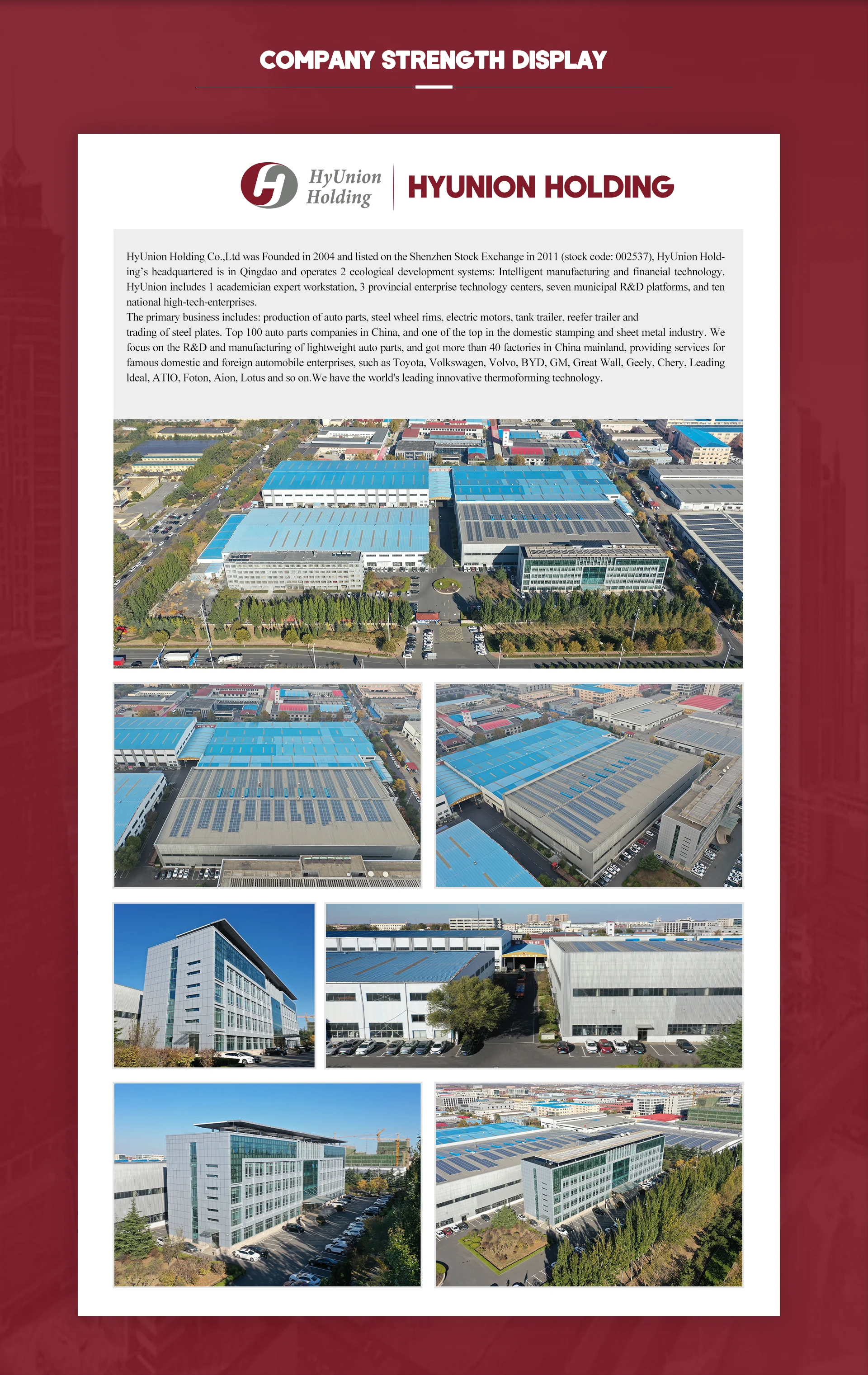 Productos principales:Rueda de camión de acero, remolque de tanque, remolque refrigerado, rueda de camión de aleación, reductor cicloidal